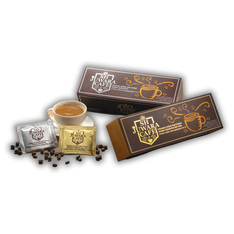 SH Juwara Cafe adalah kopi Arabica pilihan dari Brazil yang telah lama dinantikan kehadirannya di Indonesia. Dibuat dengan 100% biji kopi premium dari Brazil, creamer berkualitas tinggi tanpa lemak trans, dan Yung Kien Ganoderma untuk kesehatan hati dan meningkatkan imunitas.